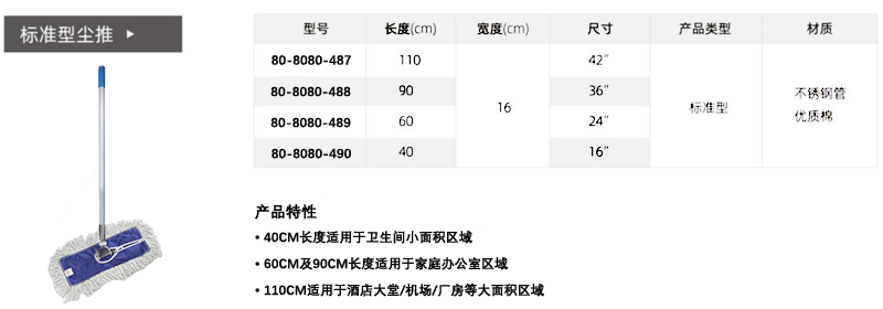 ·纱线含棉量高,股束紧密,集尘能力强 ·能经得起反复洗涤,不易散脱 ·采用不锈钢支架设计,363度灵活旋转