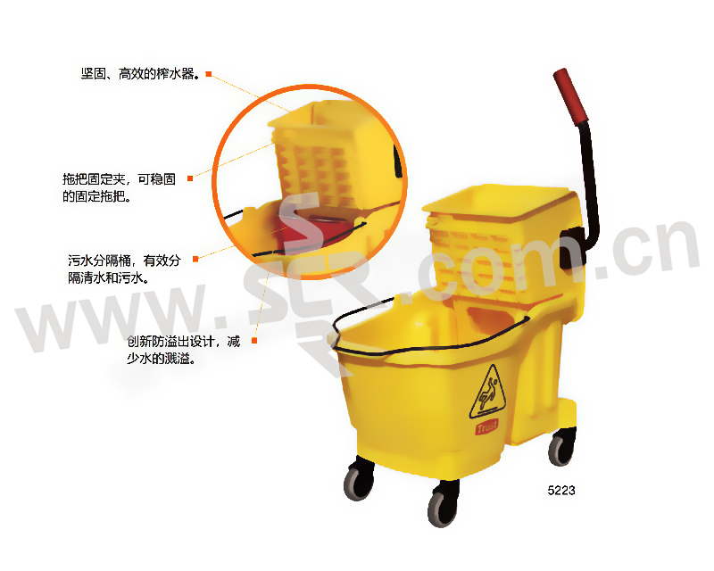 TRUST/特耐适 榨水车污水分隔桶 5261 水桶 17L 黄色 配5221/5223 1只