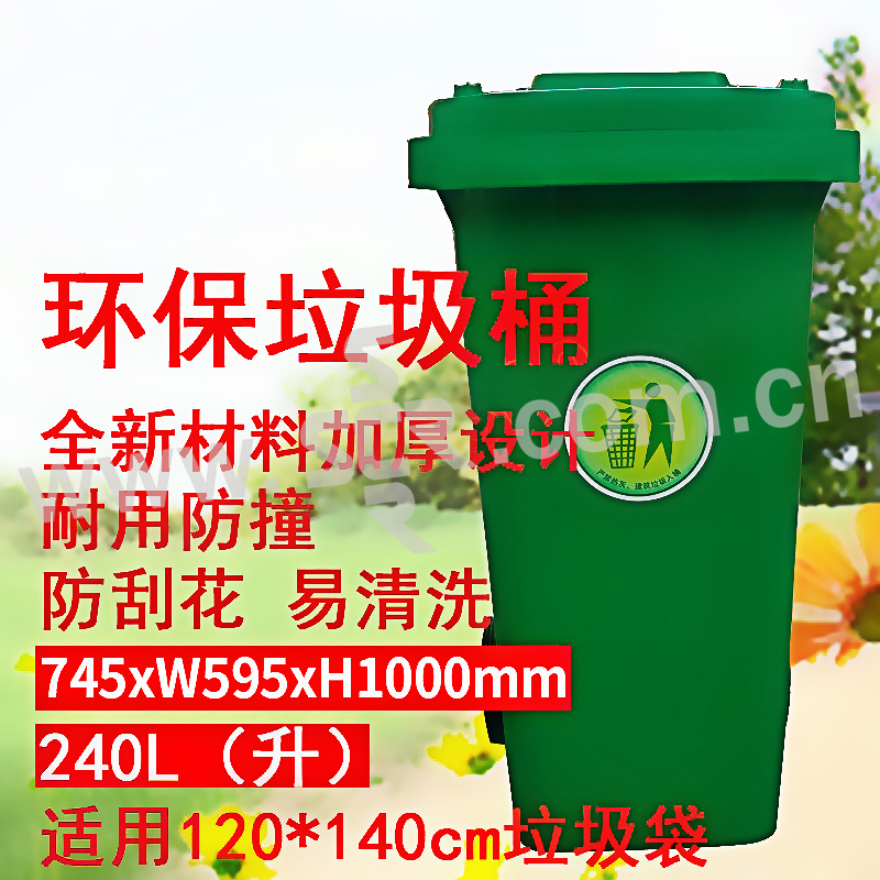 ZIREN/滋仁 环保可移动式垃圾桶 LT-046 长宽高745×595×1000mm 240 绿色 单侧带轮带盖 1个