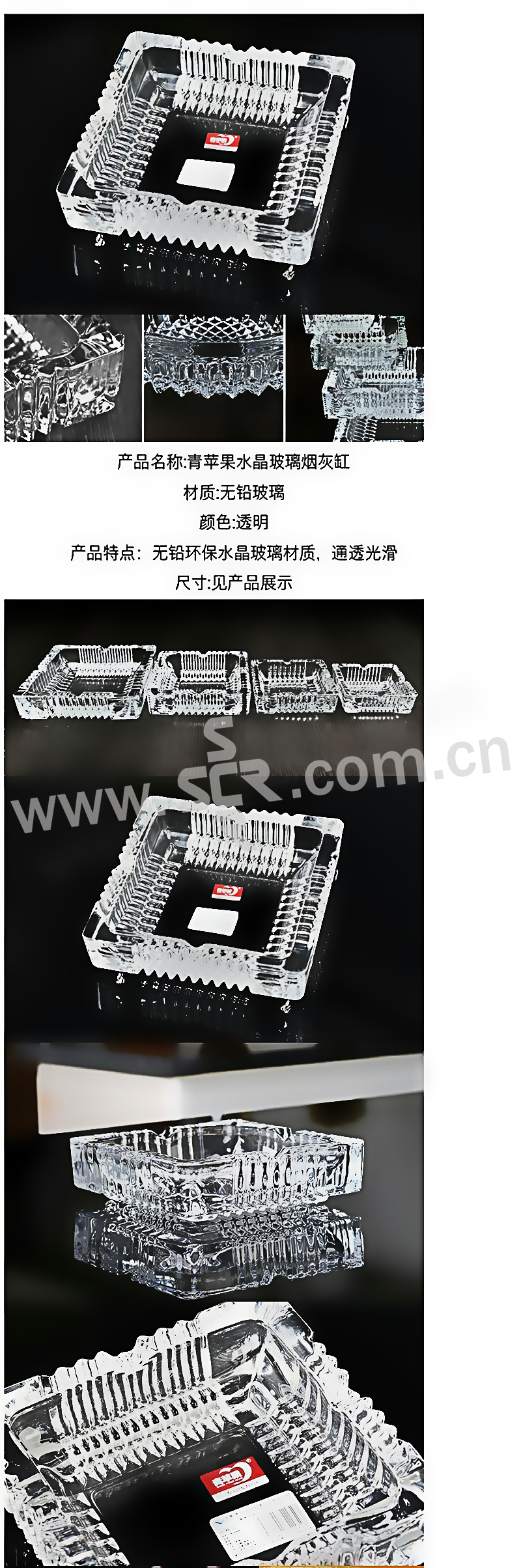 QINGPINGGUO/青苹果 方形烟灰缸 YG1016-3 12×12×3.5cm 透明 水晶玻璃 1个
