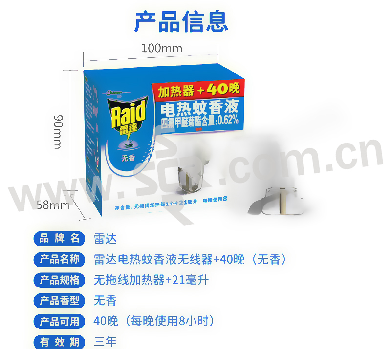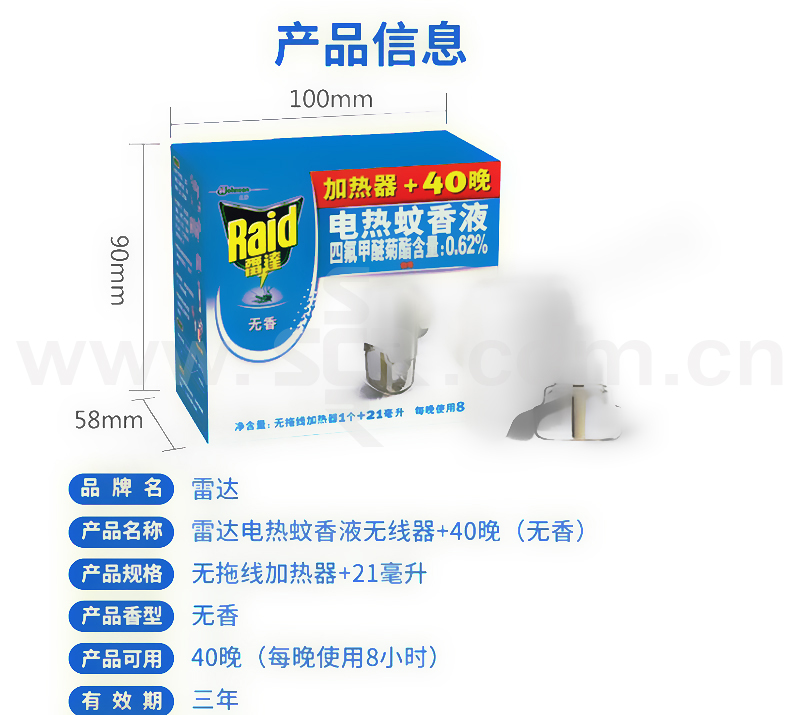 RAID/雷达 电热蚊香液40晚超值套装 6901586105452 无香 21mL+无线加热器 1组