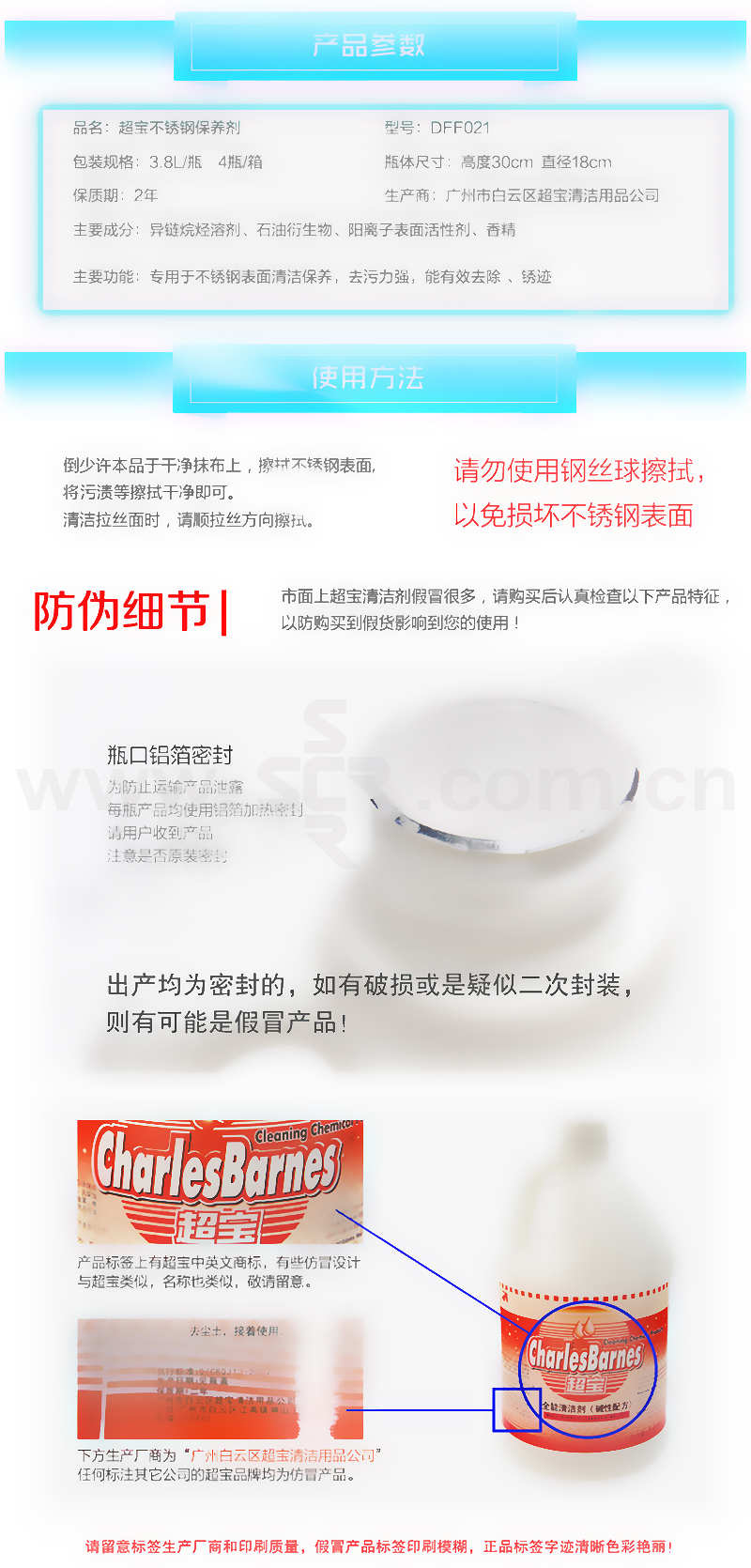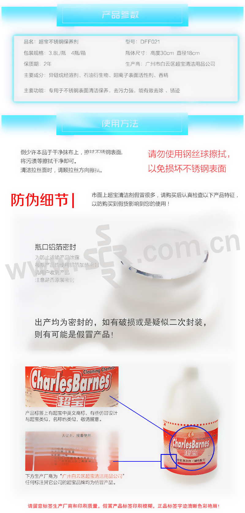 CHAOBAO/超宝 不锈钢保养剂 DFF021 3.8L 1瓶