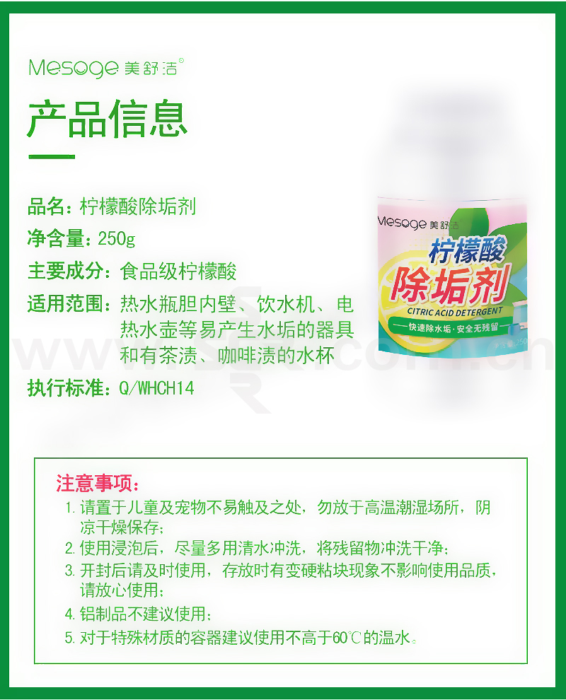 MESOGE/美舒洁 柠檬酸除垢剂 CGJ-250 250mL 1瓶