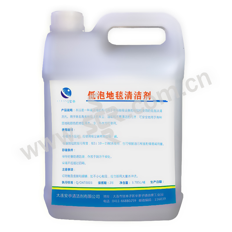 ·本品是一种高浓缩的专门用于带有抽吸设备的地毯机使用的低泡沫清洗剂。用于除去各类地毯上的灰尘、油垢和不易清洁的污渍,可安全地用于各种质地和颜色的地毯清洗。冷、热水均可使用。