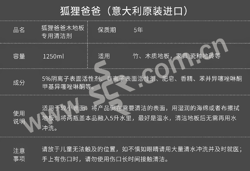 PRATIC/狐狸爸爸 木地板专用清洁剂 8017948018754 1.25L 1瓶