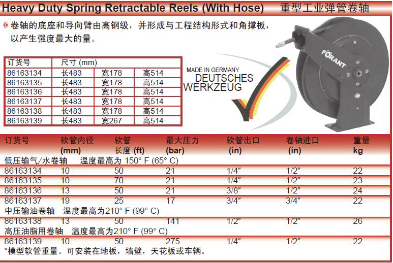 ·卷轴的底座和导向臂由高钢级,并形成与工程结构形式和角撑板,以产生强度最大的量。 ·低压输气/水卷轴 温度最高为 150° F (65° C)