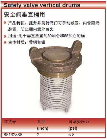 ·提升并旋转阀门可手动减压,内含阻燃装置,防止桶内意外着火