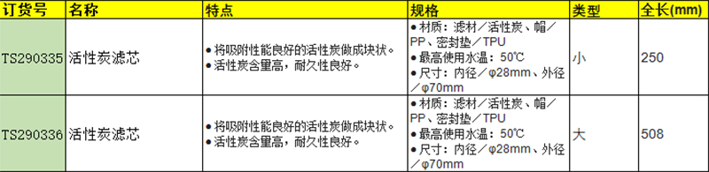 H65844 TS290335 6~12个月 全长250mm 滤材/活性炭、帽/PP、密封垫/TPU 平压式 1μm 内径/φ28mm、外径/φ70mm 50℃ 74.10
