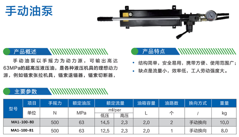 ·结构简单,安全易用,携带方便、使用范围广; ·缺点是流量小,效率低,工人劳动强度大。