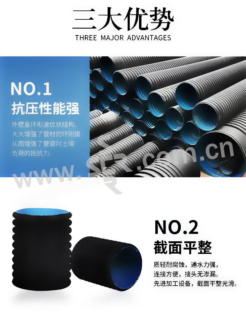 ZJLC/中锦联创 HDPE双壁双波纹管 JZLC-HDPE-可定制 DN200 等级SN8 环刚度≥8kN/m2 国标 1米