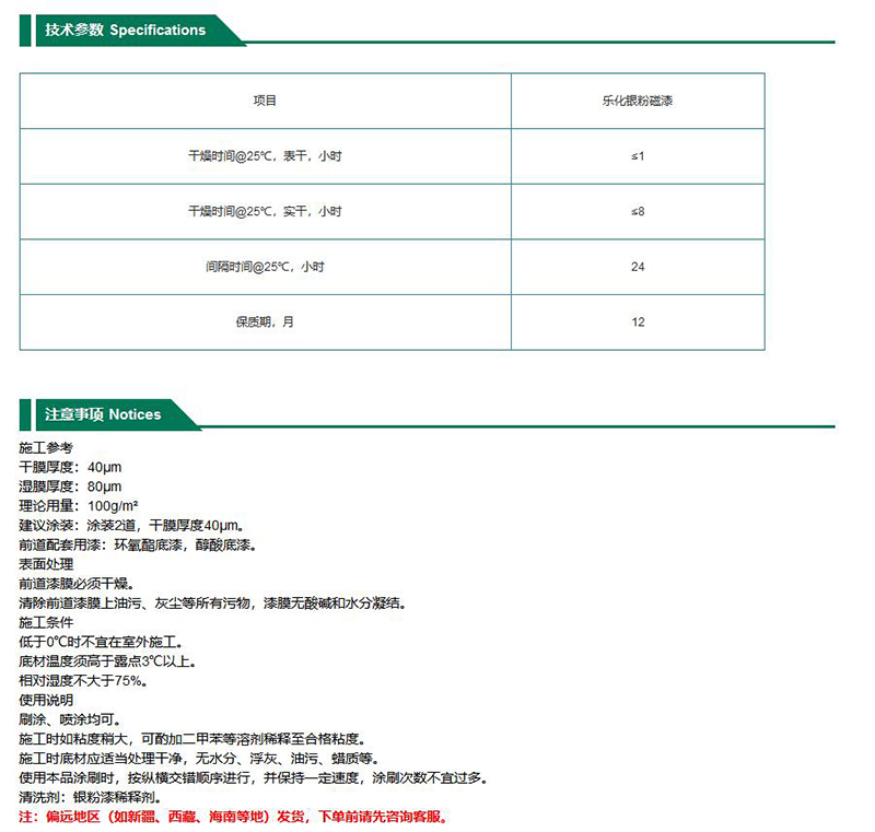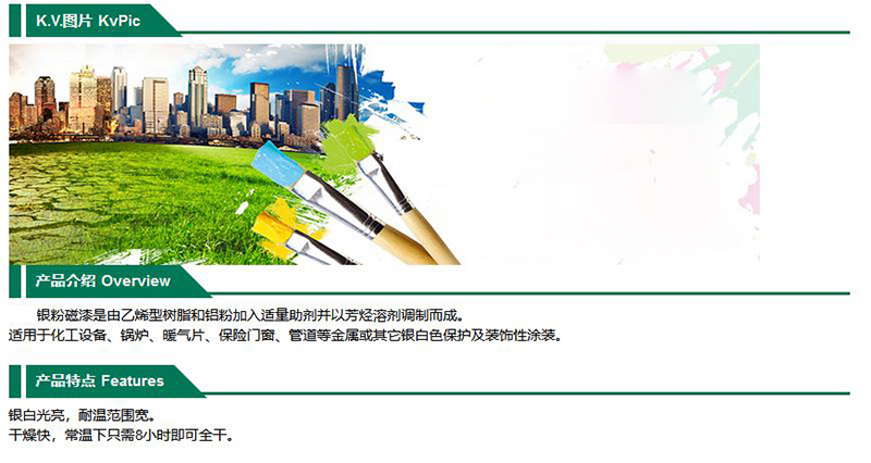 ·银白光亮,耐温范围宽 ·干燥快,常温下只需8小时即可全干
