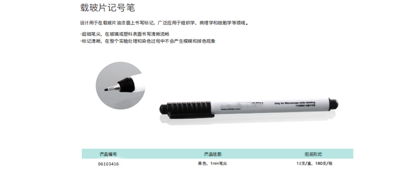 ·超细笔尖,在玻璃或塑料表面书写清晰流畅 ·标记清晰,在整个实验处理和染色过程中不会产生模糊和掉色现象
