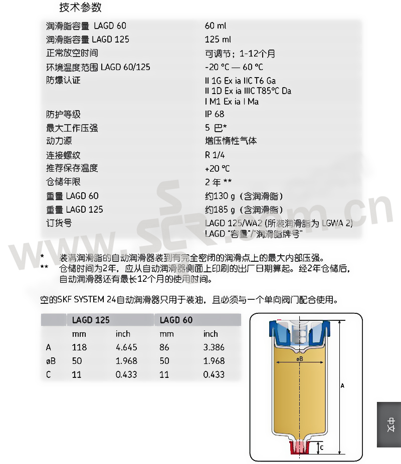 SKF/斯凯孚 气动单点自动润滑器 LAGD 125/WA2 125ml润滑脂 1个