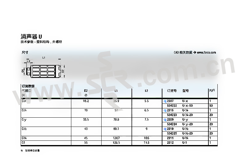 FESTO/费斯托 U系列消声器 U-1/4 外螺纹G1/4 2316 1个