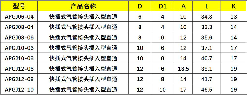 插入型直通快插式气管接头/AT91-100-370