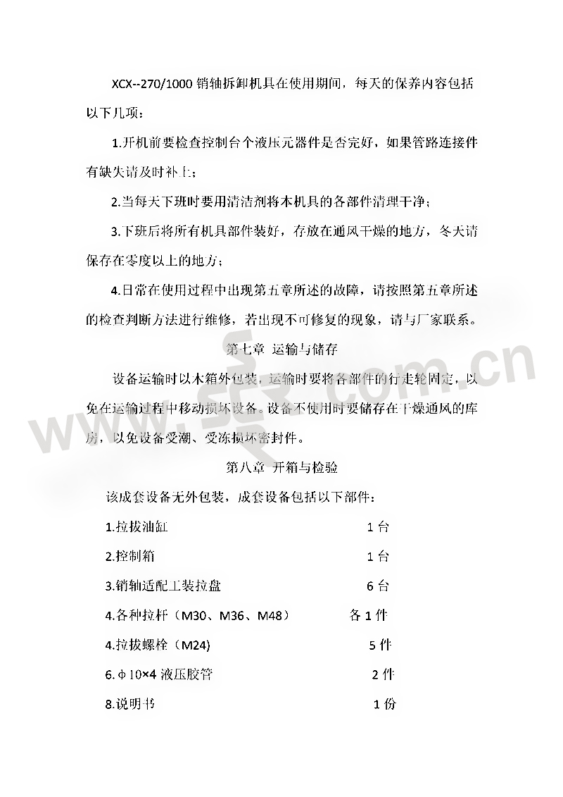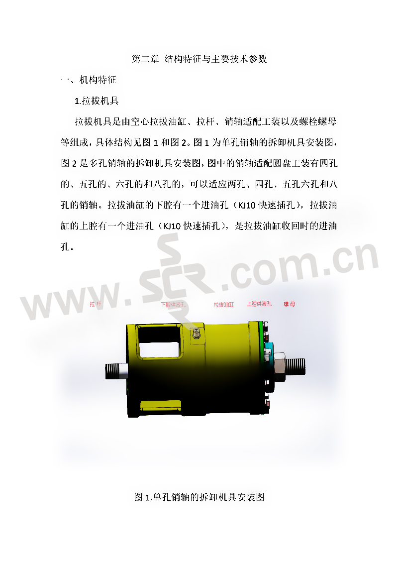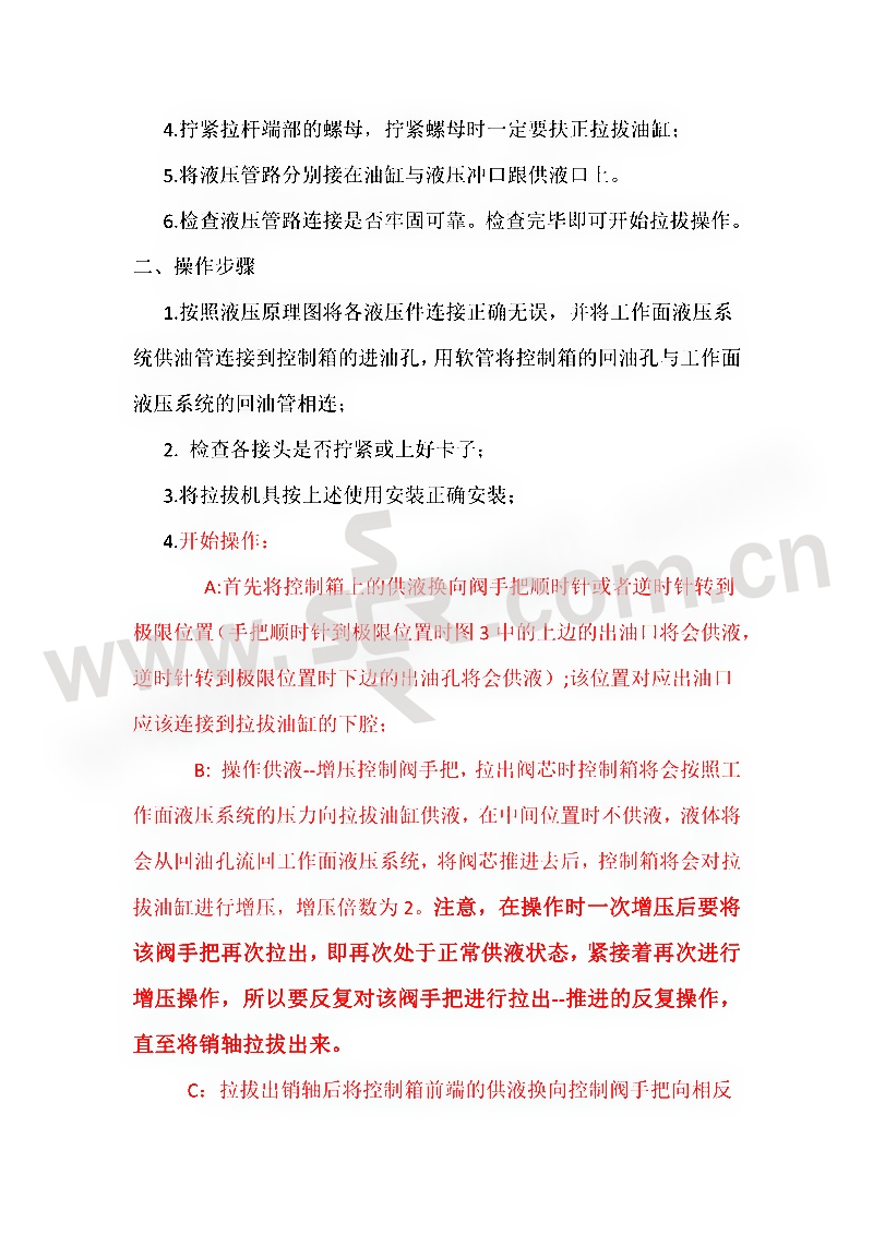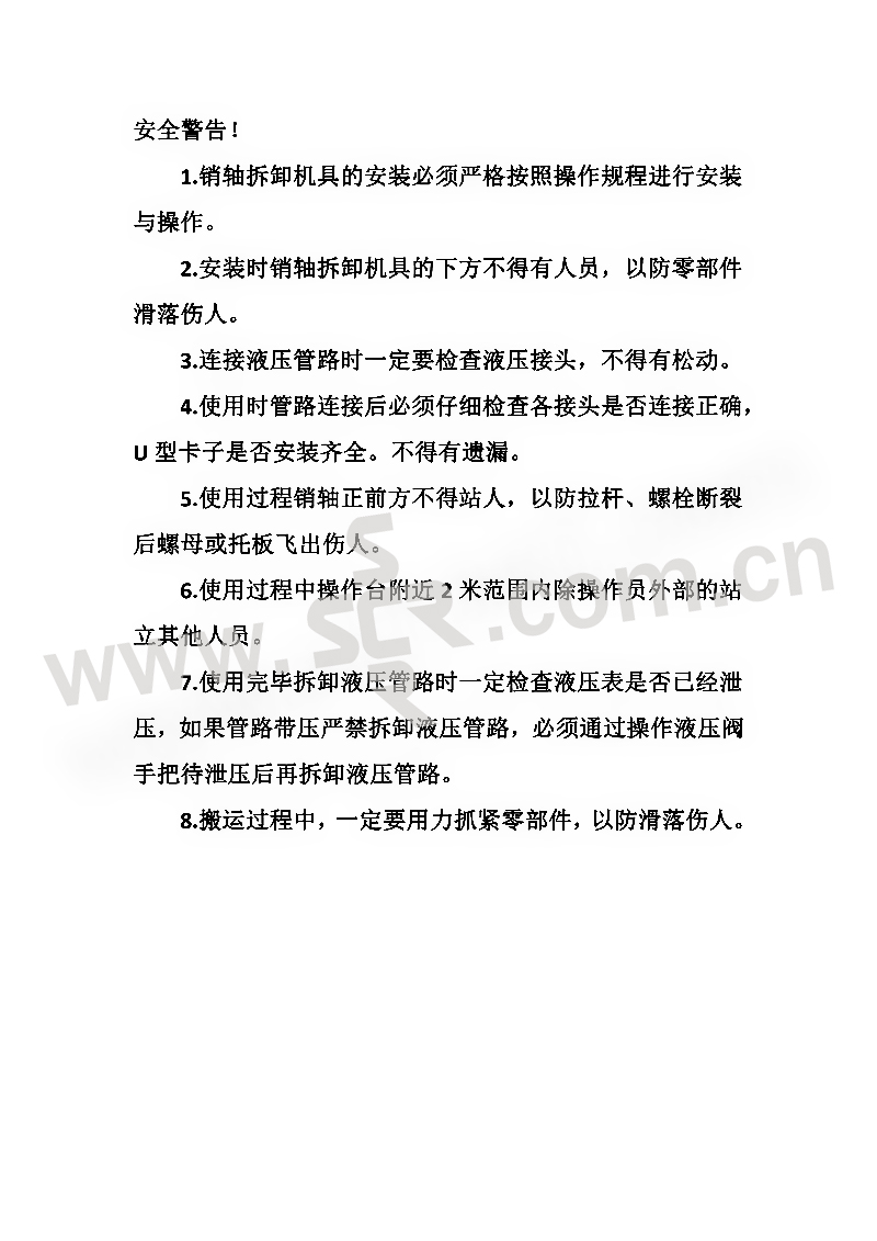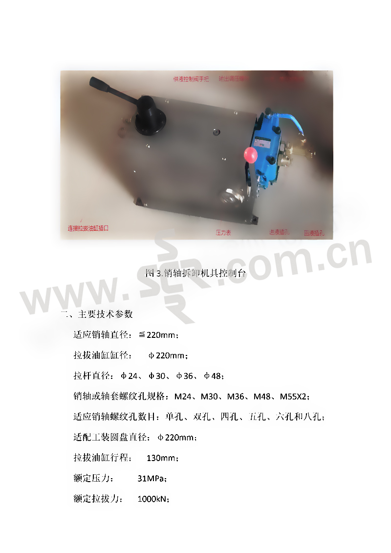 ·适用于煤矿井下或车间对采掘机械销轴的拆卸,使用现场必须具有乳化液泵站或液压油液压泵站,泵站压力不得大于31MPa。环境温度-10℃―40℃。