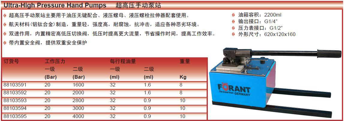 ·液压扳手专用液压泵站配套用于各类液压扳手,双出口,高低压泵站并联式,液压动力装置。高低压同时供油,可获得大的输出油量,高压时,低压泵经控制阀自动空载回油,减少电机功率消耗。 ·液压扳手专用泵,流量大,高压流量2L/min,适合各种液压扳手。 ·可长时间连续工作,工作效率是一般扭矩扳手泵的2-3倍。 ·工作压力70-700bar,远距离线控操作。铝制油箱,散热性能好。 ·可同步操作两部扳手。 ·可带压启动,重量轻,操作简便,故障低。 ·电磁换向阀可远距离遥控操作。