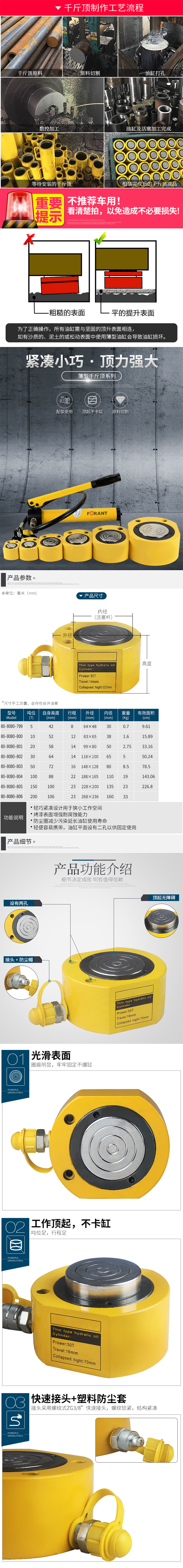 ·轻巧紧凑设计用于狭小工作空间 ·烤漆表面增强耐腐蚀能力 ·防尘圈减少污染延长油缸使用寿命 ·轻便容易携带,油缸平面设有二孔以供固定使用