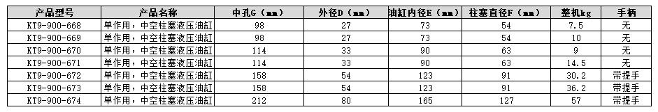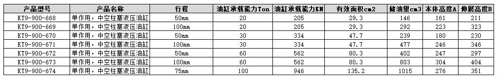 ·单作用,中空柱塞液压油缸 ·最大工作压力:700bar ·适用于各类测试、维修以及需要张拉力的应用场合。 ·中空柱塞设计,单作用,弹簧回缩。 ·表面耐腐蚀处理,光泽亮丽不易生锈。 ·高强度合金钢,经顶级热处理,并以进口数控车床钻床、磨床加工而成。 ·进口密封件,使油缸连续工作不易磨损。 ·各型号均配一个R2 3/8公接头与防尘帽。 ·柱塞头部经过热处理,无需使用鞍座。