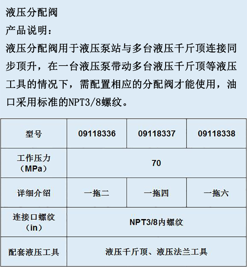 ·液压分配阀用于液压泵站与多台液压千斤顶连接同步顶升