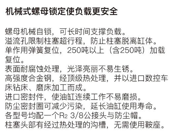 ·螺母机械自锁,可长时间支撑负载。