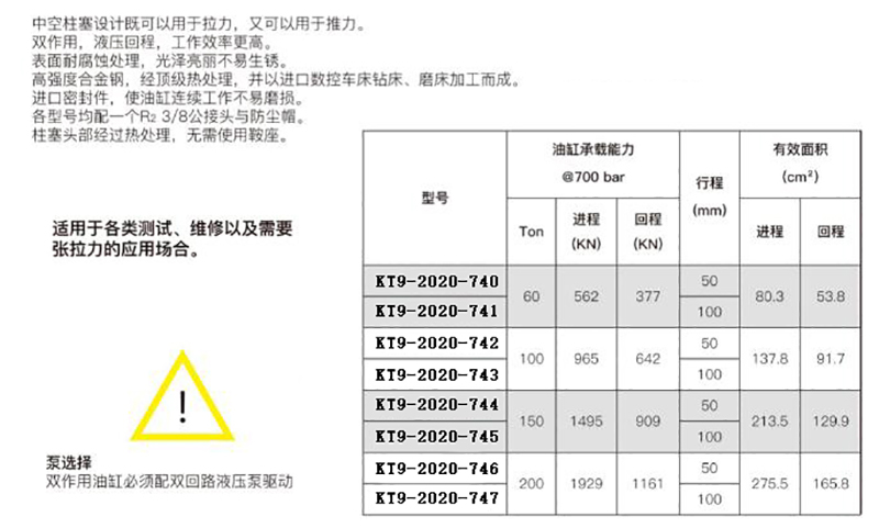 ·中空柱塞设计既可以用于拉力,又可以用于推力。