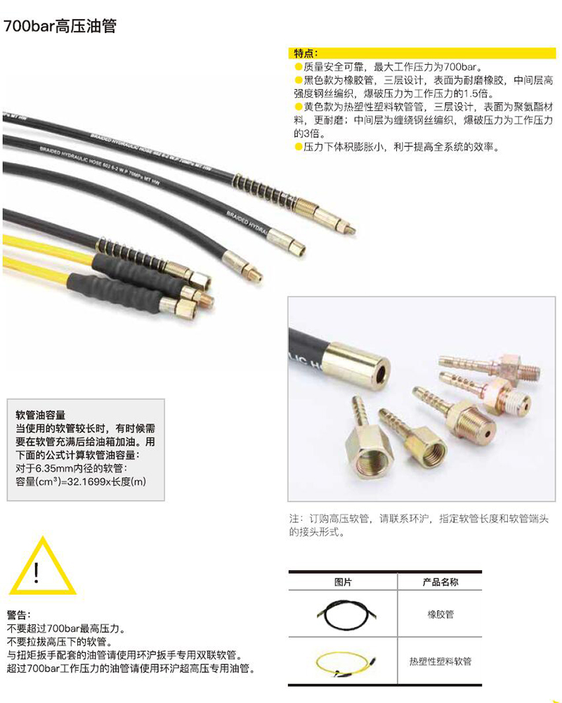 ·黄色款为热塑性塑料软管管,三层设计,表面为聚氨酯材料,更耐磨;中间层为缠绕钢丝编织,爆破压力为工作压力的3倍。