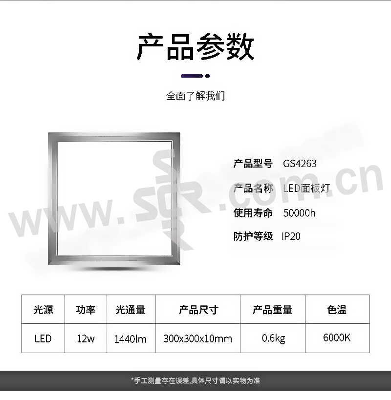 ZIGUANG/紫光 工业级LED面板灯 GS4263 12W 1440lm 300×300×10mm 600g 6000K 1套