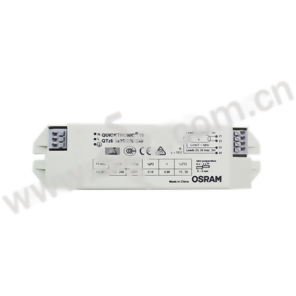 ·额定供电电压:220V·电源频率:50Hz·瞬时启动·灯管寿终或异常状态时自动关断,换灯后自动重启·在tcmax=65℃,完好率>90%的条件下,寿命可达20,000小时·适宜安装在I类灯具内使用·温度在-15°C...+50°C范围内能使灯管可靠地启动·适用于非频繁开关的场合(日开关≤3次)·安全标准:EN 61347-2-3/GB 19510.4·电磁兼容性:符合EN 55015/GB 17743标准·谐波含量控制:符合EN 61000-3-2/GB 17625.1标准"