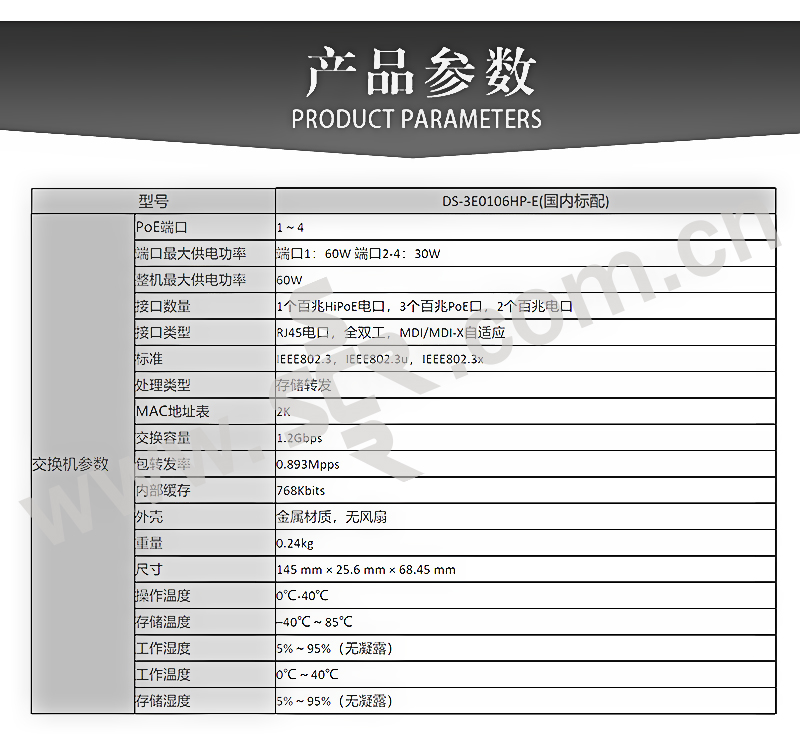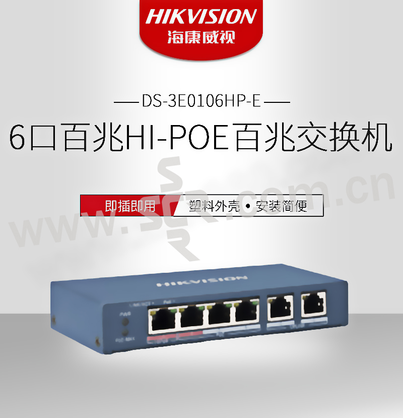 HIKVISION/海康威视 Hi-PoE百兆交换机 DS-3E0106HP-E 6口百兆 1台