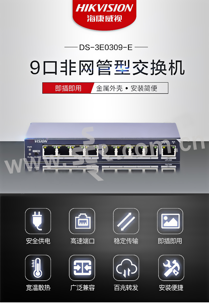 HIKVISION/海康威视 百兆接入千兆上行交换机 DS-3E0309-E 9口 1台