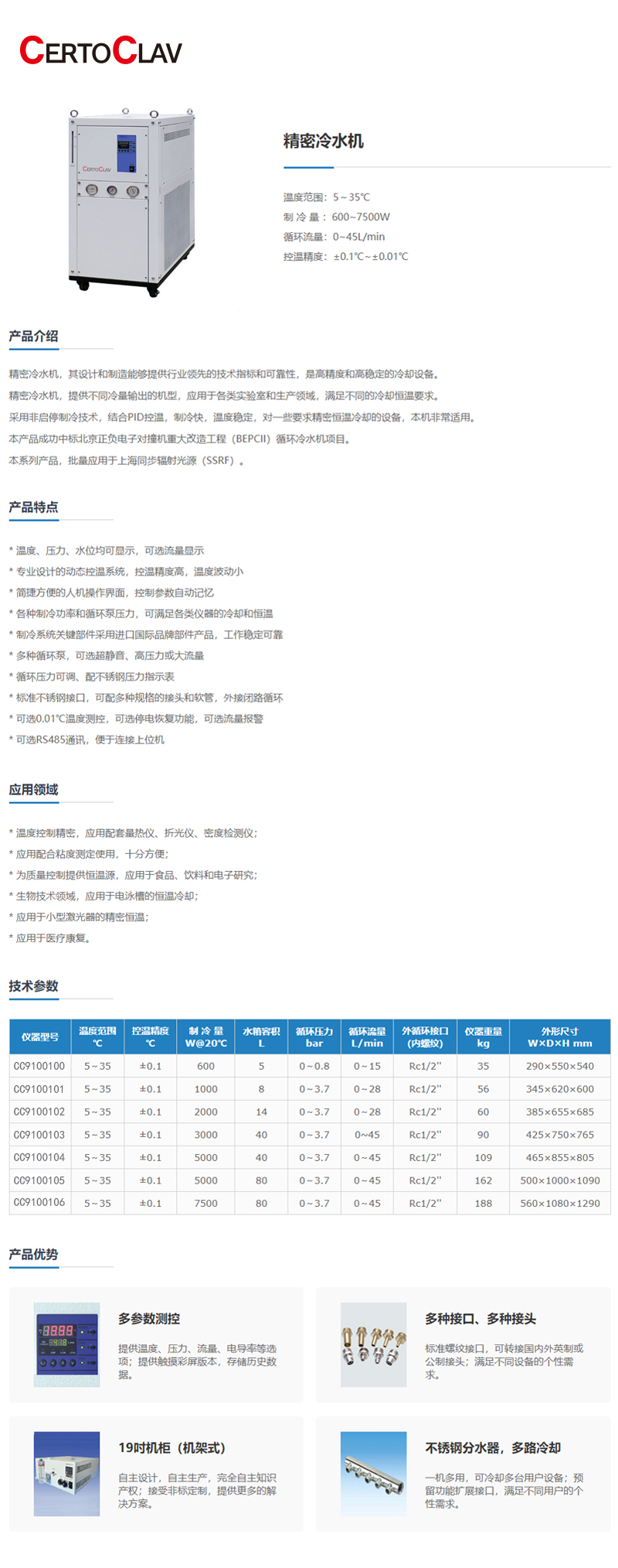 ·各种制冷功率和循环泵压力,可满足各类仪器的冷却和恒温;