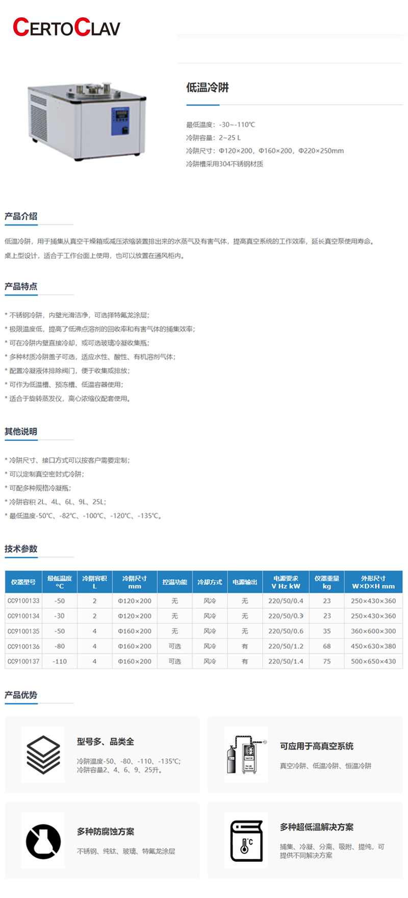 订货号 制造商型号 类型 磨口尺寸 冷阱容积 最低温度 外形尺寸(W×D×H) 价格 购物车