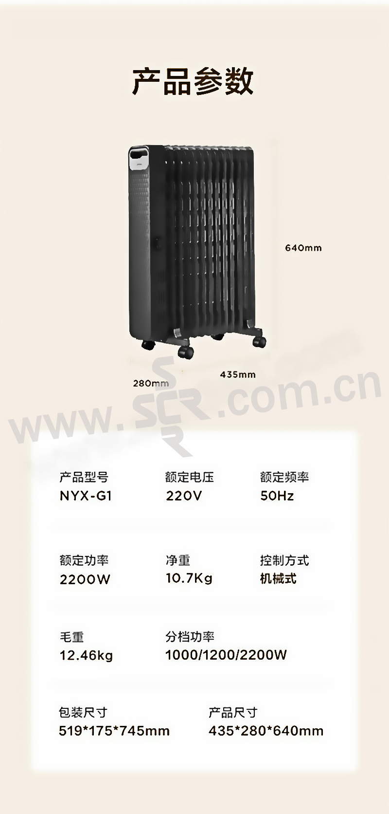 ·13片散热片,2200W·125mm专利镂空散热片,散热更快·双尾片设计(专利),安全防烫·中石化专供导热油,终生免充油,安全系数高·简易翘板开关控制·国标级防火材料,无明火更放心·倾倒自动断电,双重过热保护,更安全·折叠式晾衣架,蒸发式加湿盒