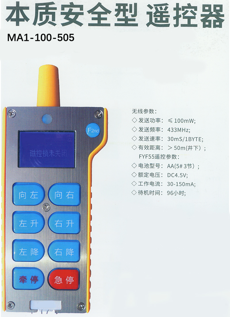 ·双向通讯操作和控制的设备状态一目了然 ·可变配置的设计―各种差异需求―—满足 ·灵敏快速操作响应时间小于10Oms ·个性定制功能、协议自由定制 ·特设磁控锁操作更安全 ·井下距离最远可达100m的通讯距离