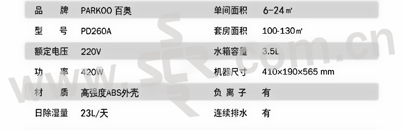 PARKOO/百奥 尊品系列 家用除湿机 PD260A 1台
