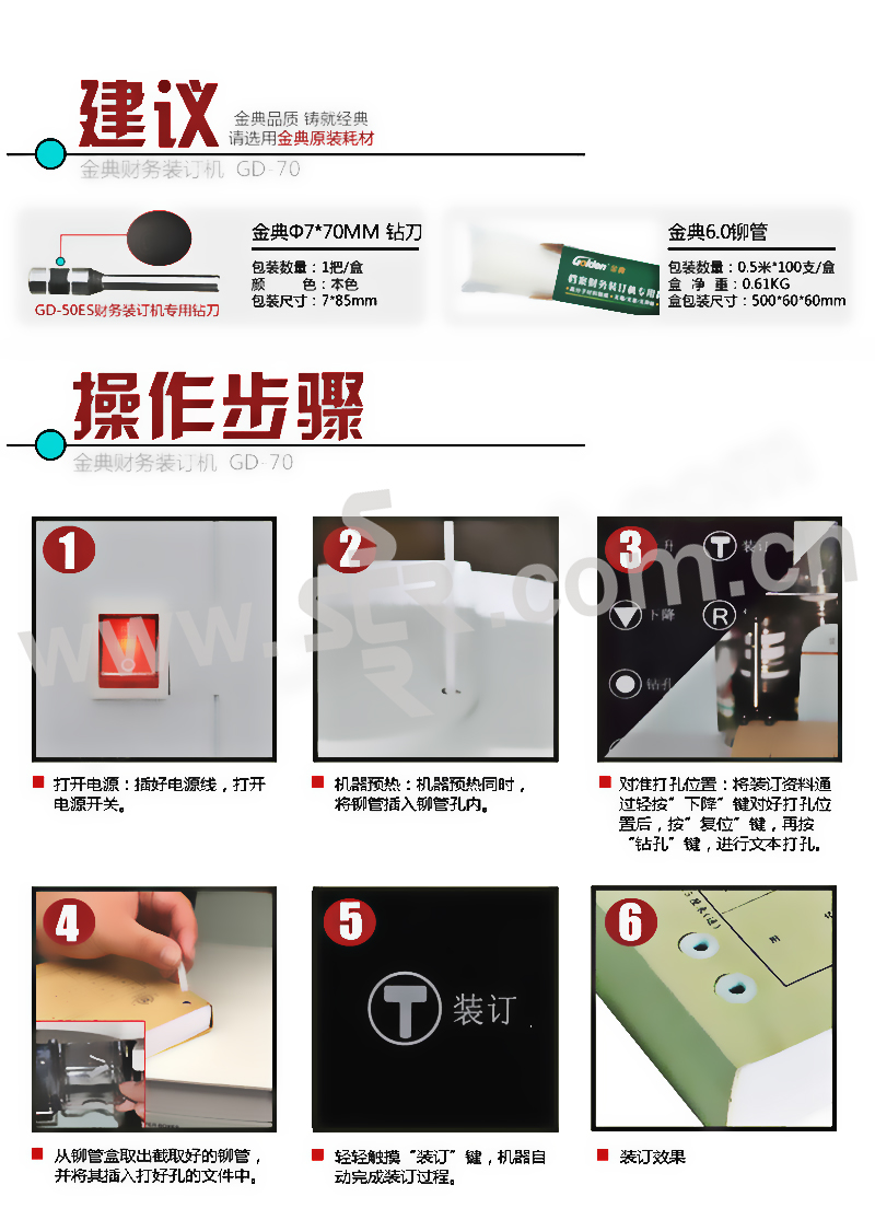 GOLDEN/金典 财务凭证装订机 GD-70 钻刀7×70 铆管6.0mm 1台