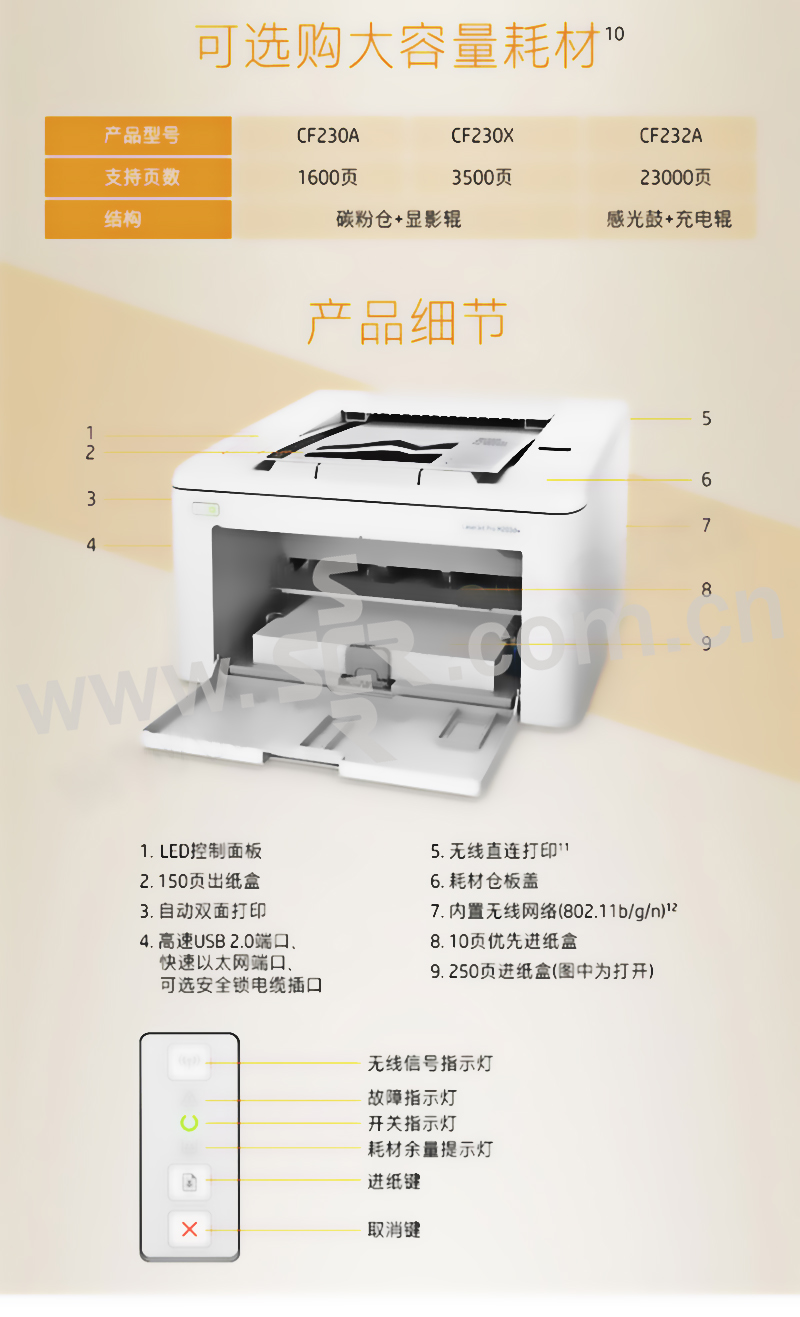 HP/惠普 A4激光打印机 LaserJetProM203dw 1台