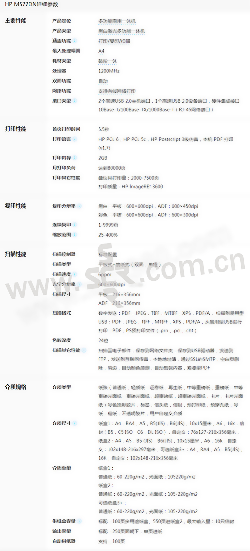 HP/惠普 A4彩色激光多功能一体机 LaserJet MFP M577dn 打印/复印/扫描 1台