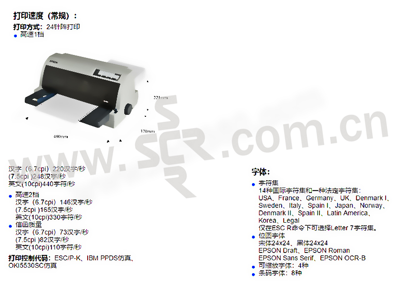 ·功能强大:适用于证卡、报表及票据打印,厚度可至3.6毫米·快速省时:高速一档打印速度248汉字/秒(7.5cpi)·稳定耐用:打印头寿命4亿次/针,平均无故障时间2万小时·节能省材:专备32米色带,可支持1千万字符打印·安心无忧:提供整机(含打印头)三年保修服务