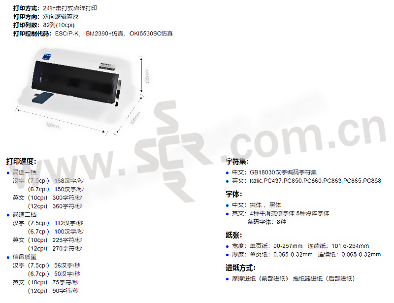 ·高速一档打印速度:168汉字/秒(7.5cpi)