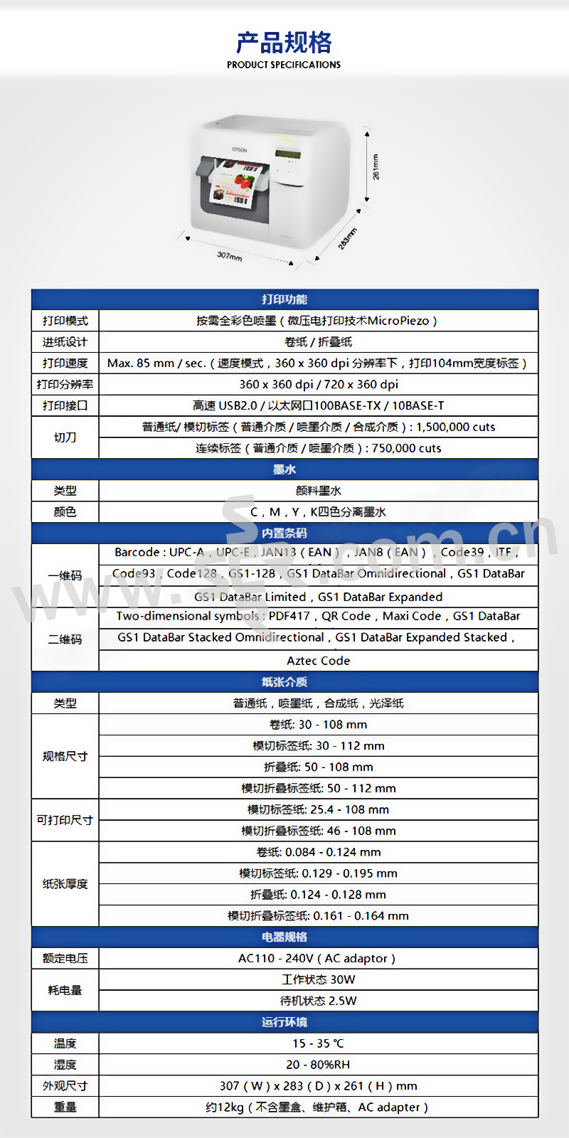 EPSON/爱普生 彩色标签打印机 TM-C3520 307×283×261mm 白色 1台