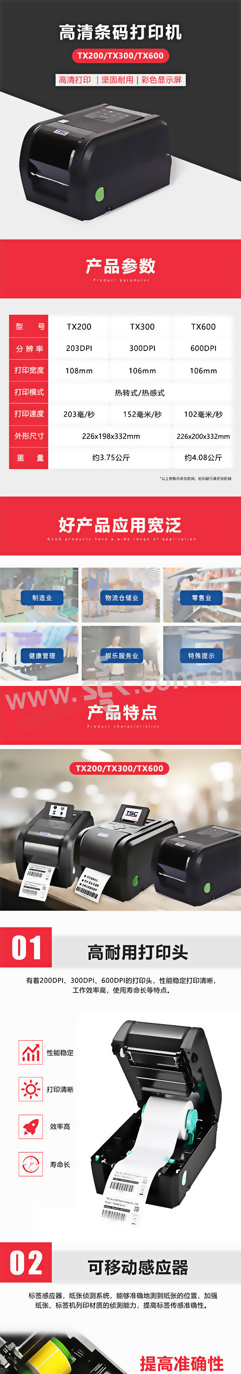 ·TSC台半TX200,工业条码打印机热转印不干胶标签机二维码条码打印机TX300TX600