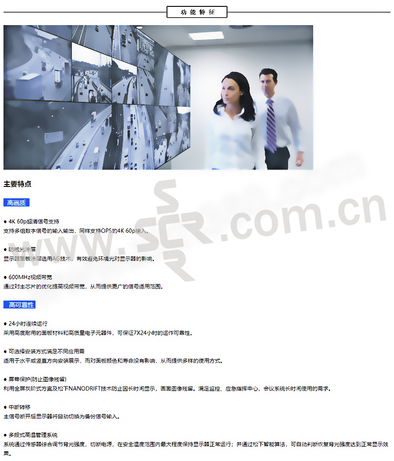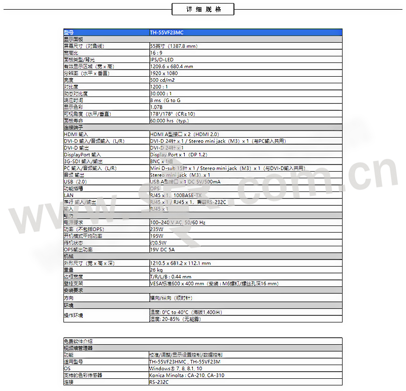 PANASONIC/松下 55英寸拼接显示器 TH-55VF23MC 双边拼缝0.88mm 亮度500cd/m2 黑色 1台