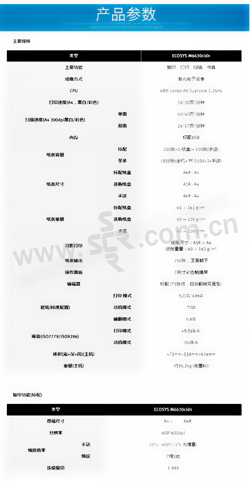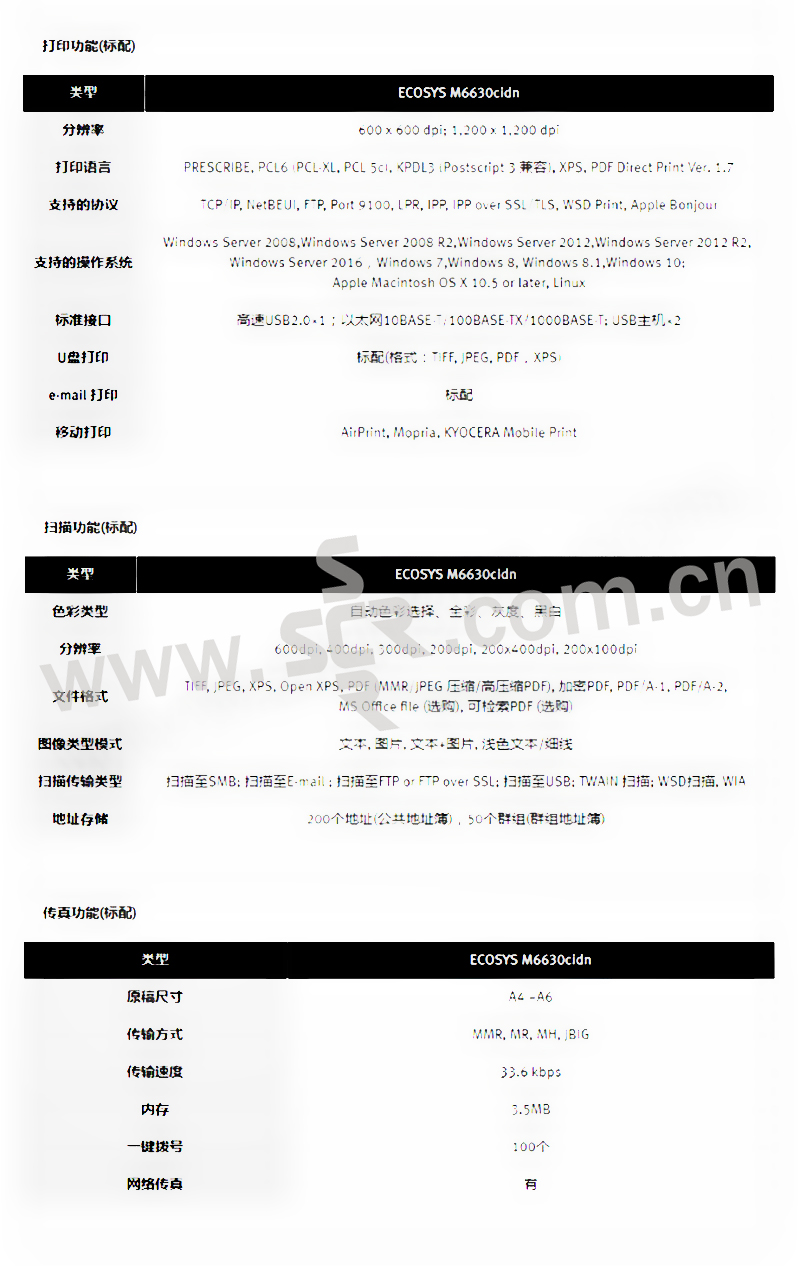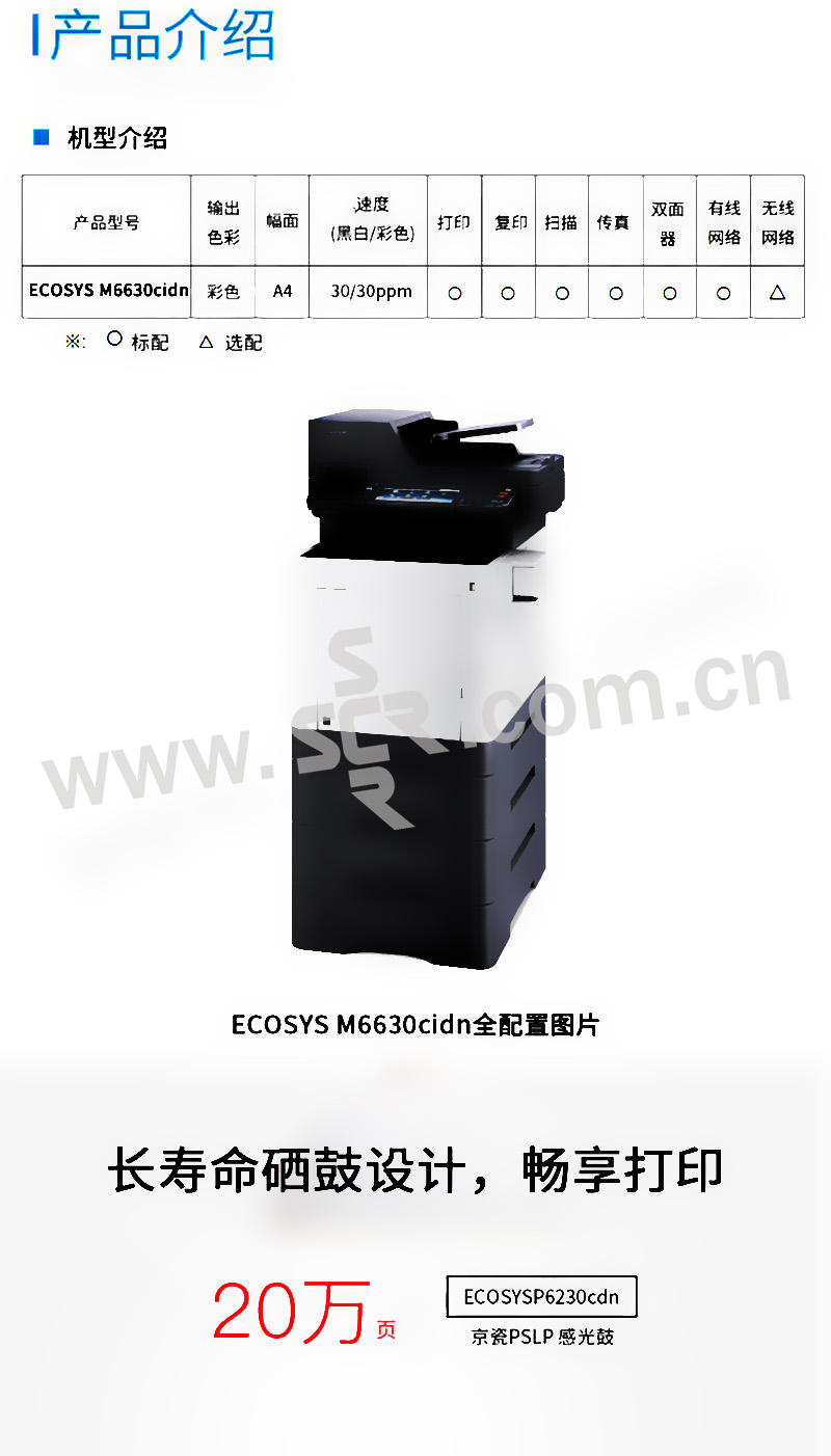 KYOCERA/京瓷 彩色激光多功能一体机 M6630cidn 打印 复印 扫描 传真 1台