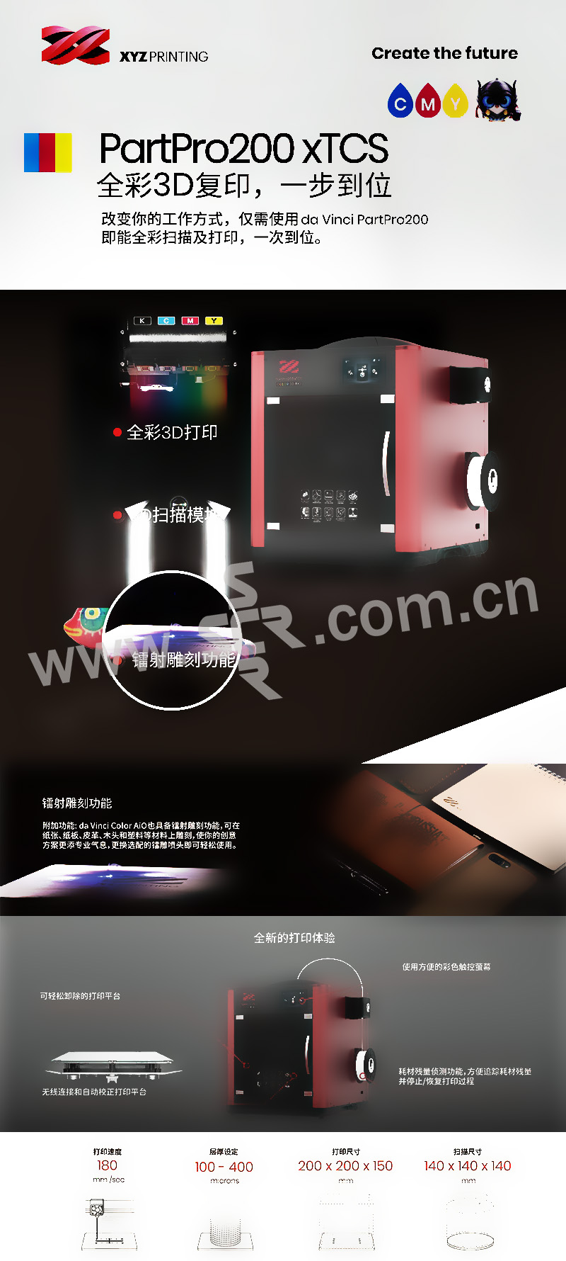 ·全彩3D打印机,一步到位 改变你的工作方式,仅需使用Part Pro200,即能全彩扫描及打印,一次到位。
