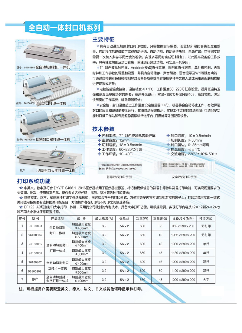 数显全自动切割封口双打印一体机