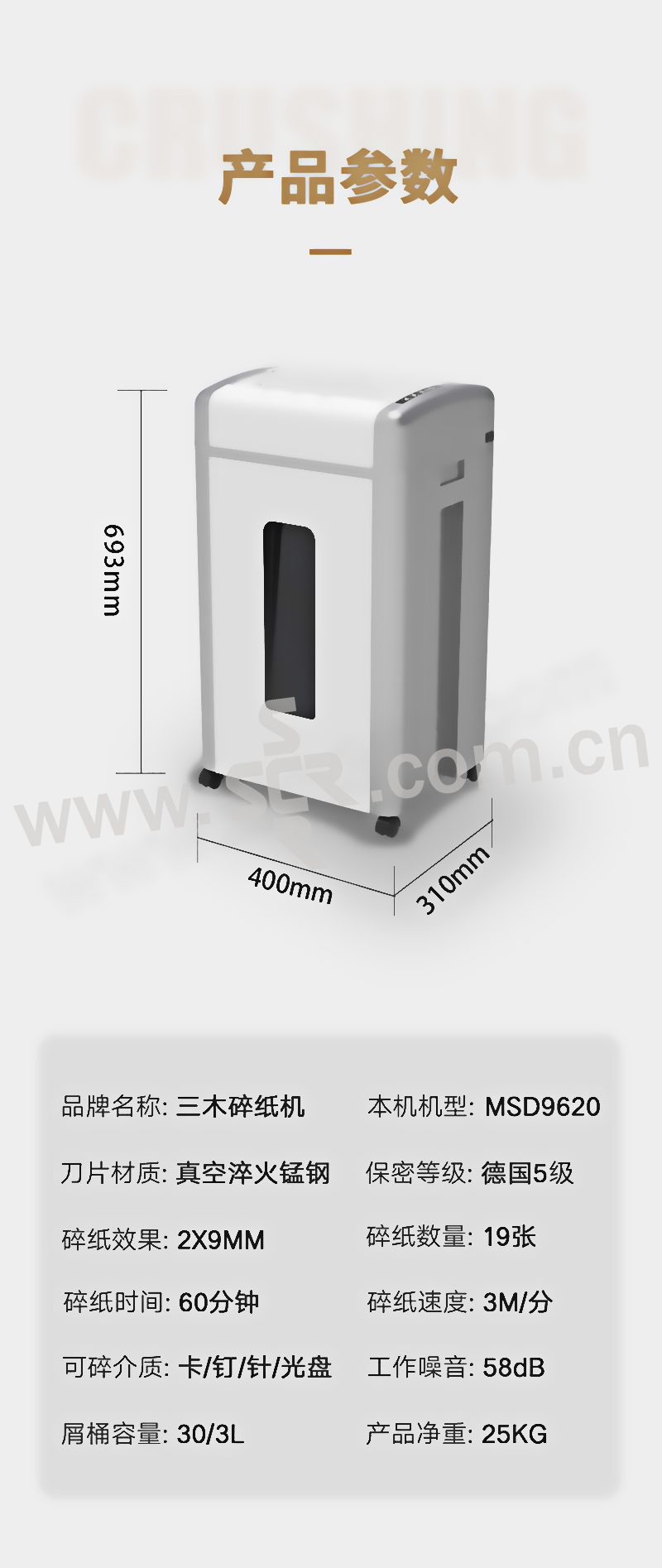 SUNWOOD/三木 碎纸机 MSD9620 单次碎纸19张 27L 碎纸效果2×9mm 1台