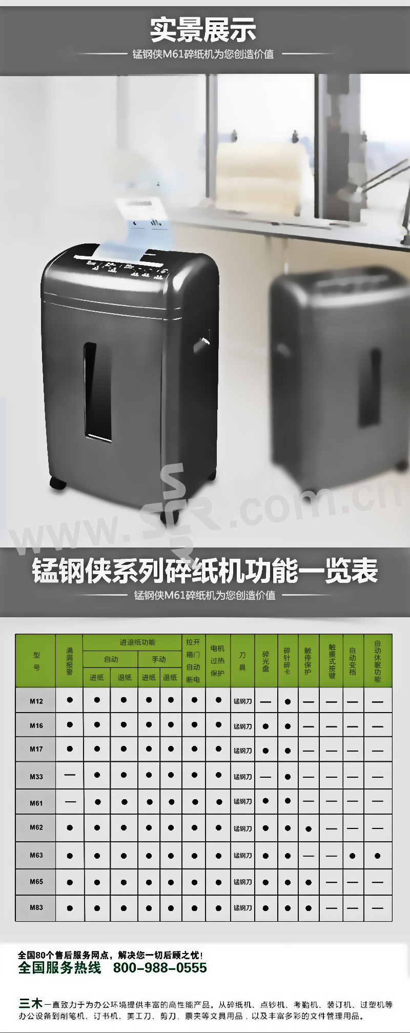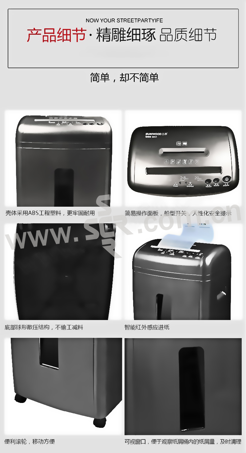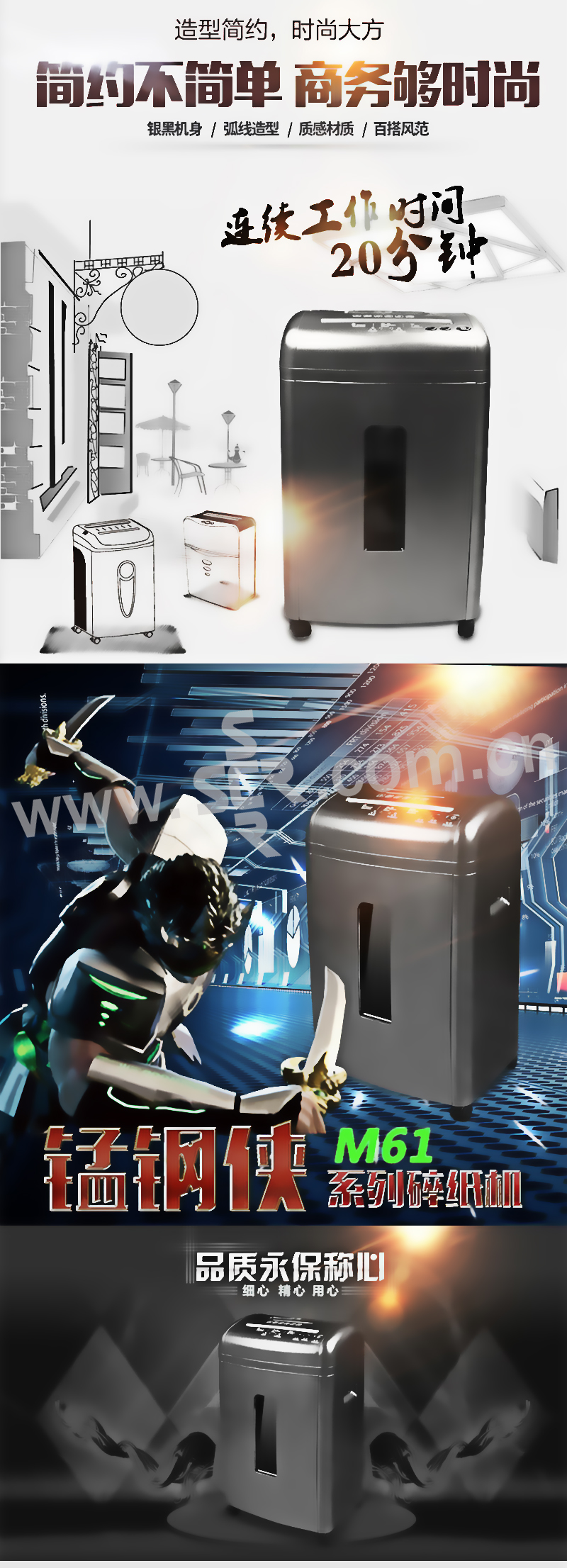 SUNWOOD/三木 碎纸机 M61 单次碎纸9张 20L 碎纸效果2×8mm 1台