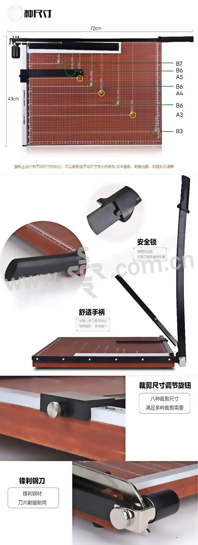 DELI/得力 木质切纸机 8001 21"×16"(棕)可切B3纸 1把
